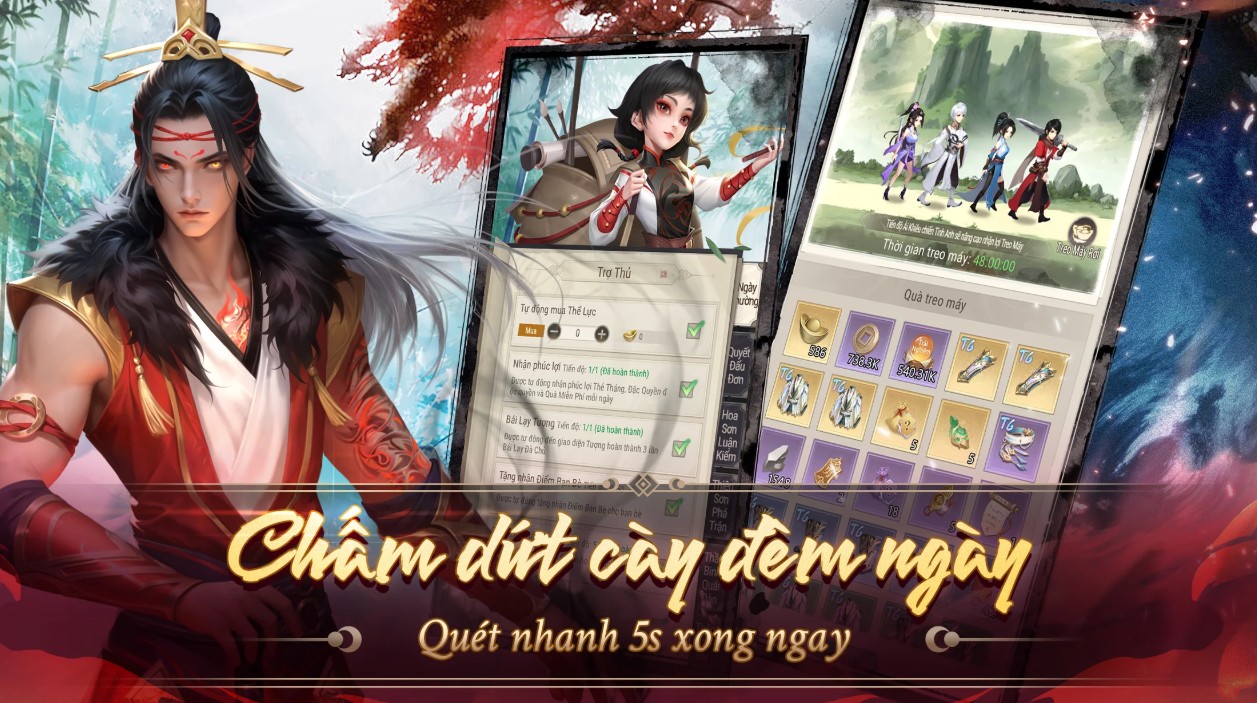 Số lượng người đăng ký trước đạt 1 triệu người sẽ nhận ngay gói thưởng gồm : 10 Phiếu rút thưởng + 800 Kim Nguyên Bảo + Hiệp Khách Trác Việt Xi Mộng
